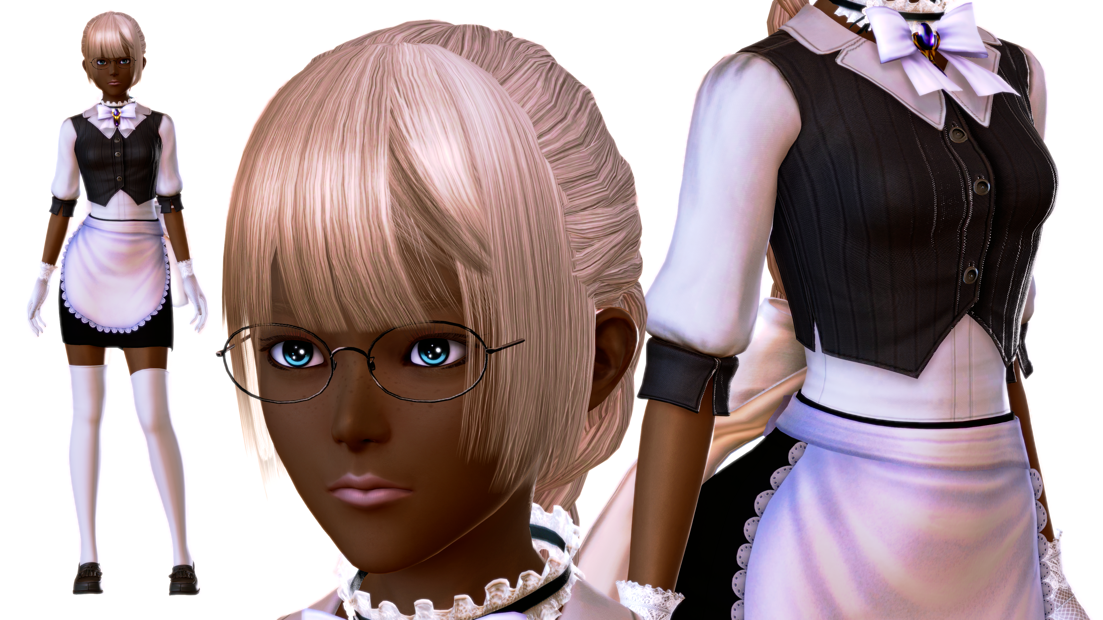 Loni is leonese, having blonde hair, blue eyes, and dark skin. Her bodies for most of her life are pretty petite and short. While she could change this, for most of her life she felt uncomfortable going too extreme with her body. She had to keep continuity to feel like her. When her bodies get more realistic, she starts feeling more confidence to give herself more shape, though she remains on the small side. Her hair usually is neatly cut and put up in a clip or in a bun.