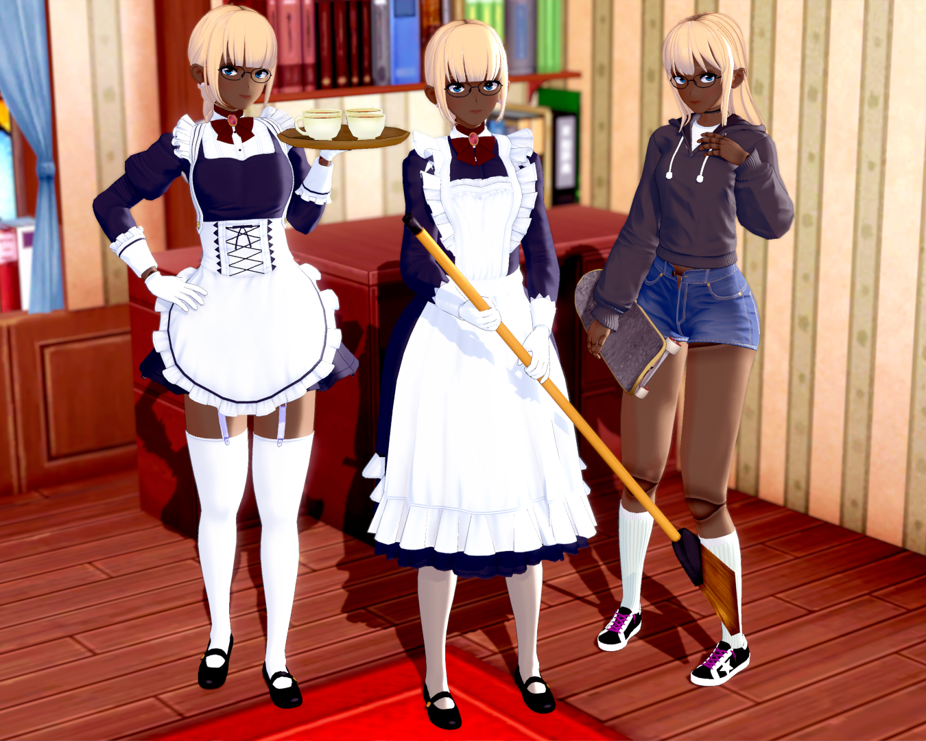 Loni likes dressing up. While her usual maid dress is pretty plain, around Sinlen (who both tolerates and... well, enjoys it), she likes wearing cuter maid outfits. Casually, once outside Aistoria, Loni starts just... dressing like a normal woman from the area.