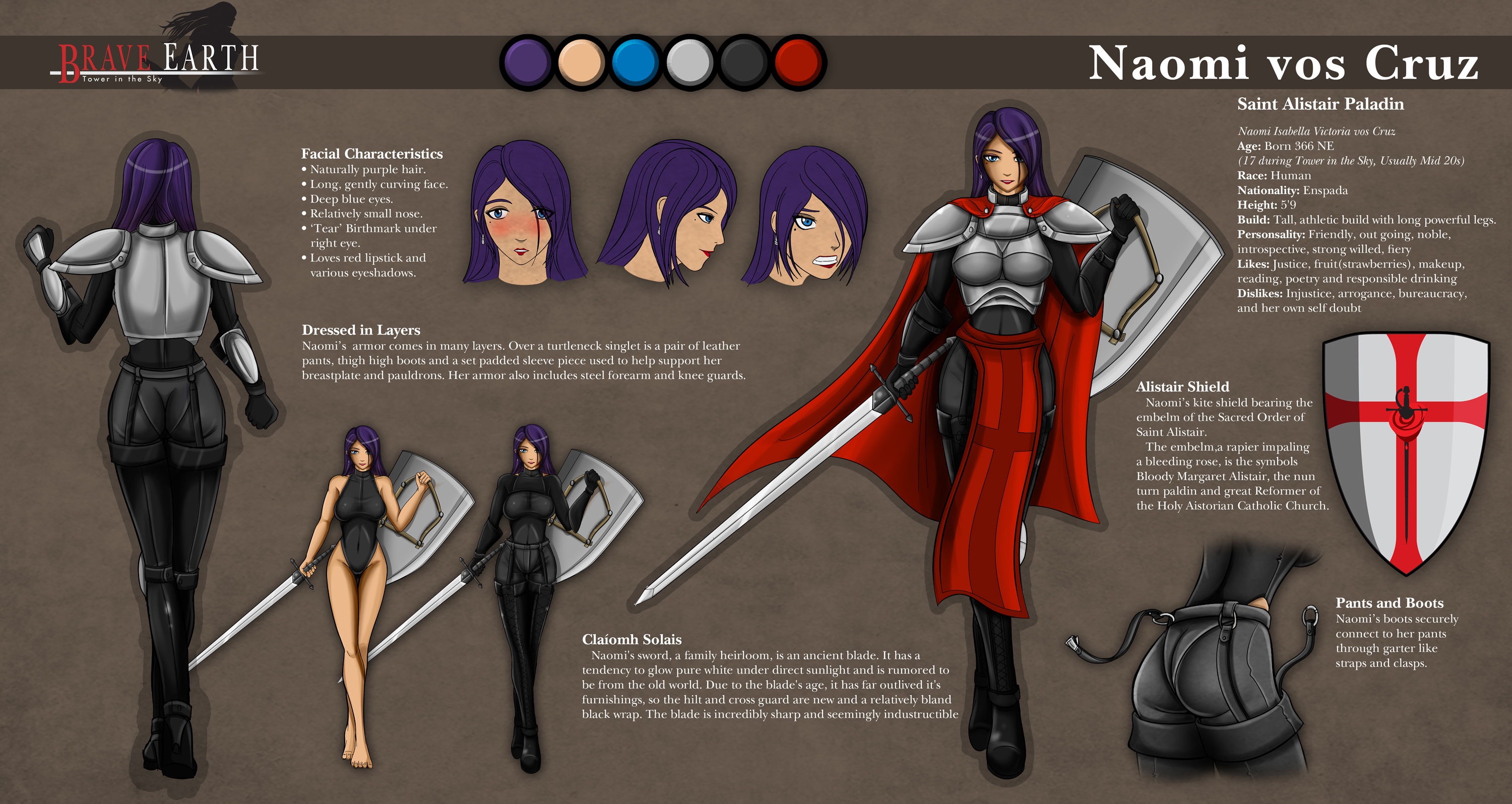 Naomi vos Cruz (Full name, Naomi Isabella Victoria vos Cruz i Brandt) is a Esperadan noble and member of The Sacred Order of Saint Alistair. She is a skilled fighter, known for her involvement in The Lyse Incident (Brave Earth: Prologue) and other exploits.