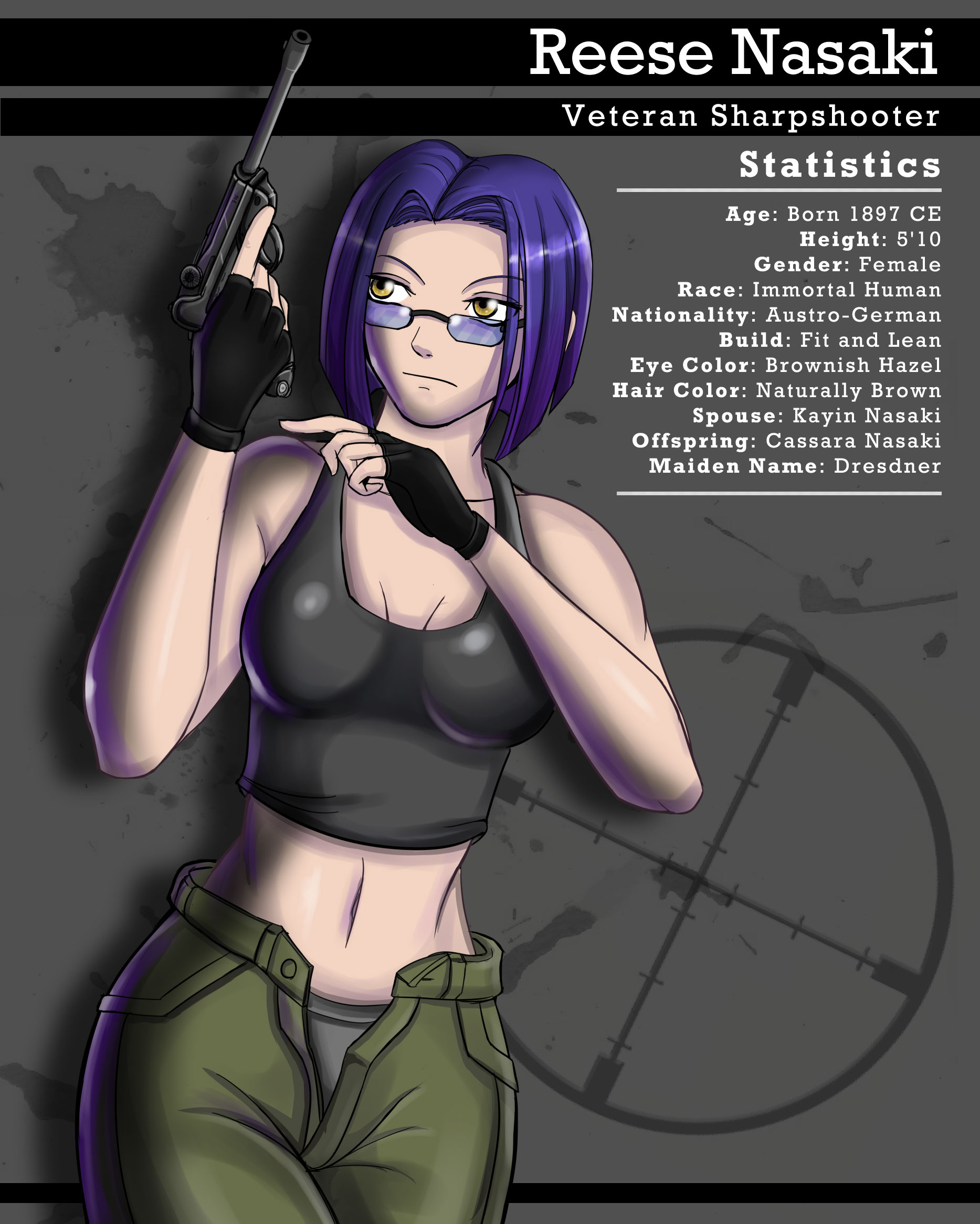 After the war, and before marrying Kayin she's Reese Johanna Maria Wallner, before eventually being Reese Nasaki. During down periods, she'd generally change names and pose as daughters of her self by reshuffling around her various names into new legal names, though she almost never goes back to using Theresia.