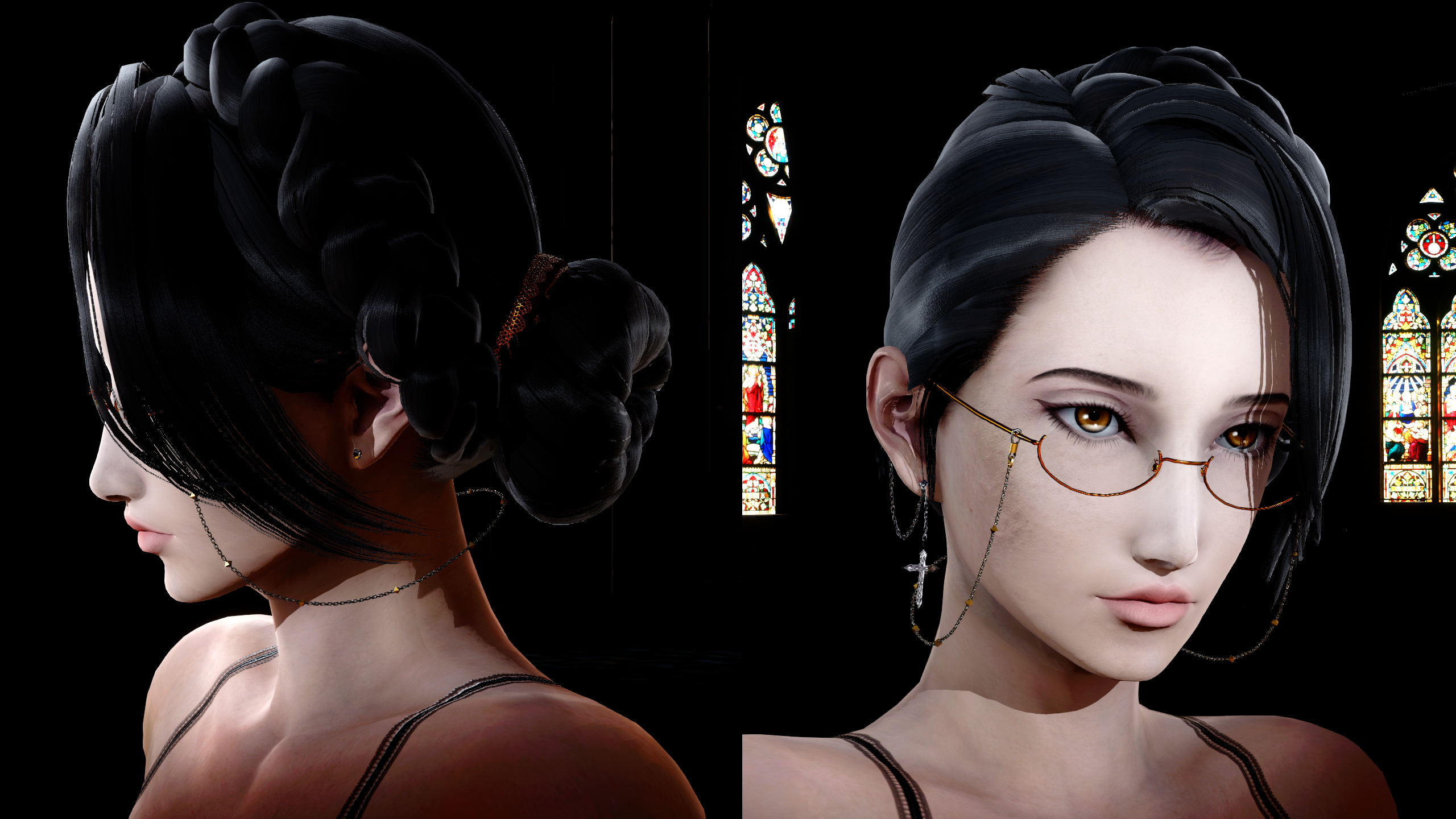 - Pale, lithe body, with long dark hair and amber eyes. Kinda hot as hell?