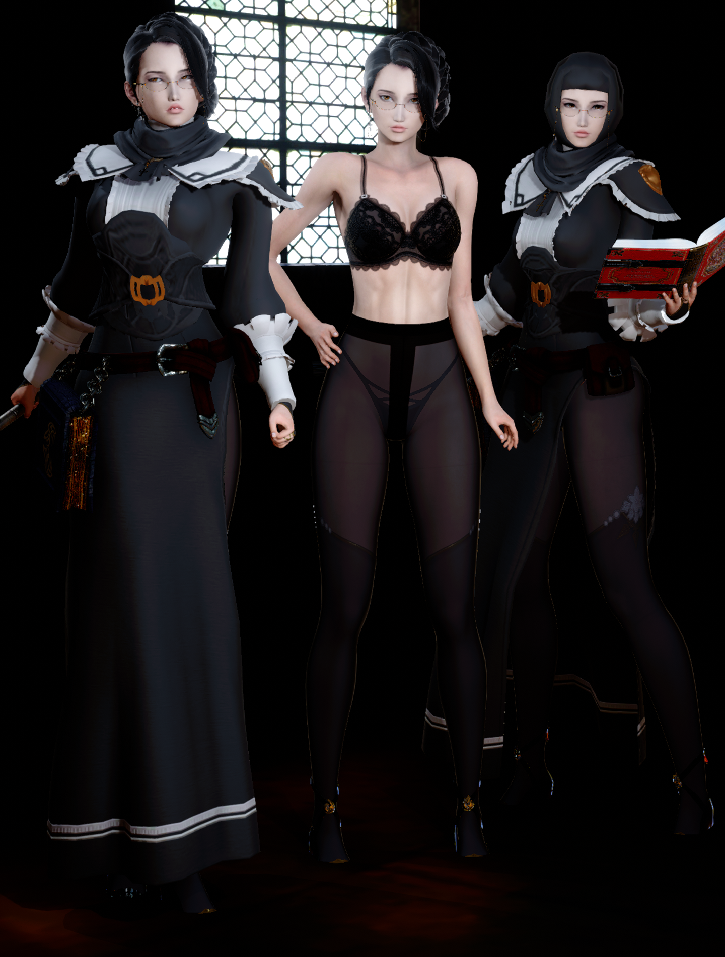 Appearance: Kinda like Elvira with less extreme hair? Kinda chubby and breasty like her daughter, but taller with less hips. Looks younger than she is.