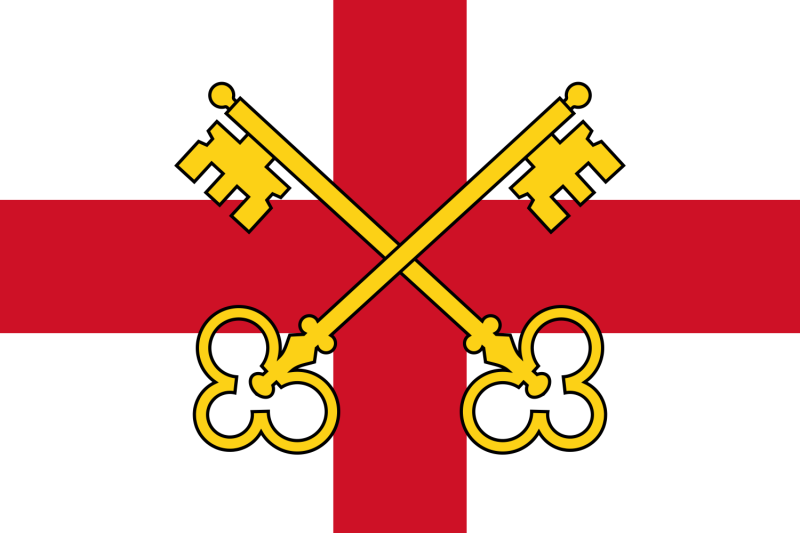 This one is boring and straight forward since that is literally just the current papal insignia. Maybe at some point I'll fuck it up more. It's sitting on a swiss cross which is a play to the fact that the current vatican is kinda sorta where the swiss alp" would be. They have different names now and are unrecognizable (okay technically they're not the same mountains at all cause shit is fucked up but that's a whole tangent) but years and years after the rending people kinda get where used to be wear on the map and throw backs to the old world are a common way to try and imply age and legitimacy.