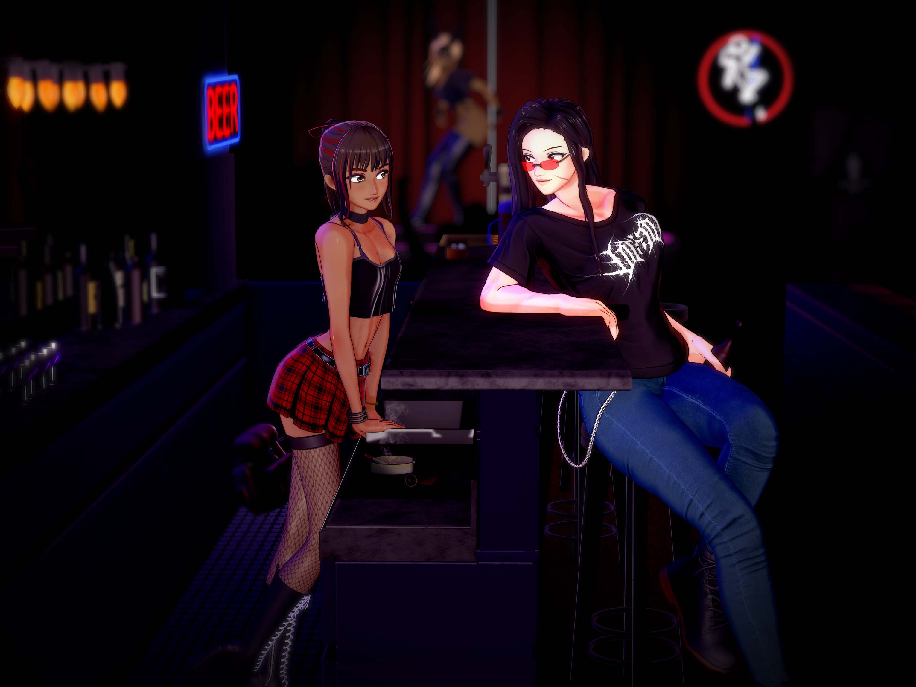 - Currently working at a bar tender at a strip club (That's Bunny, another character, blurred out in the back). This has been a good way to get a number of characters I needed co collate into one spot.